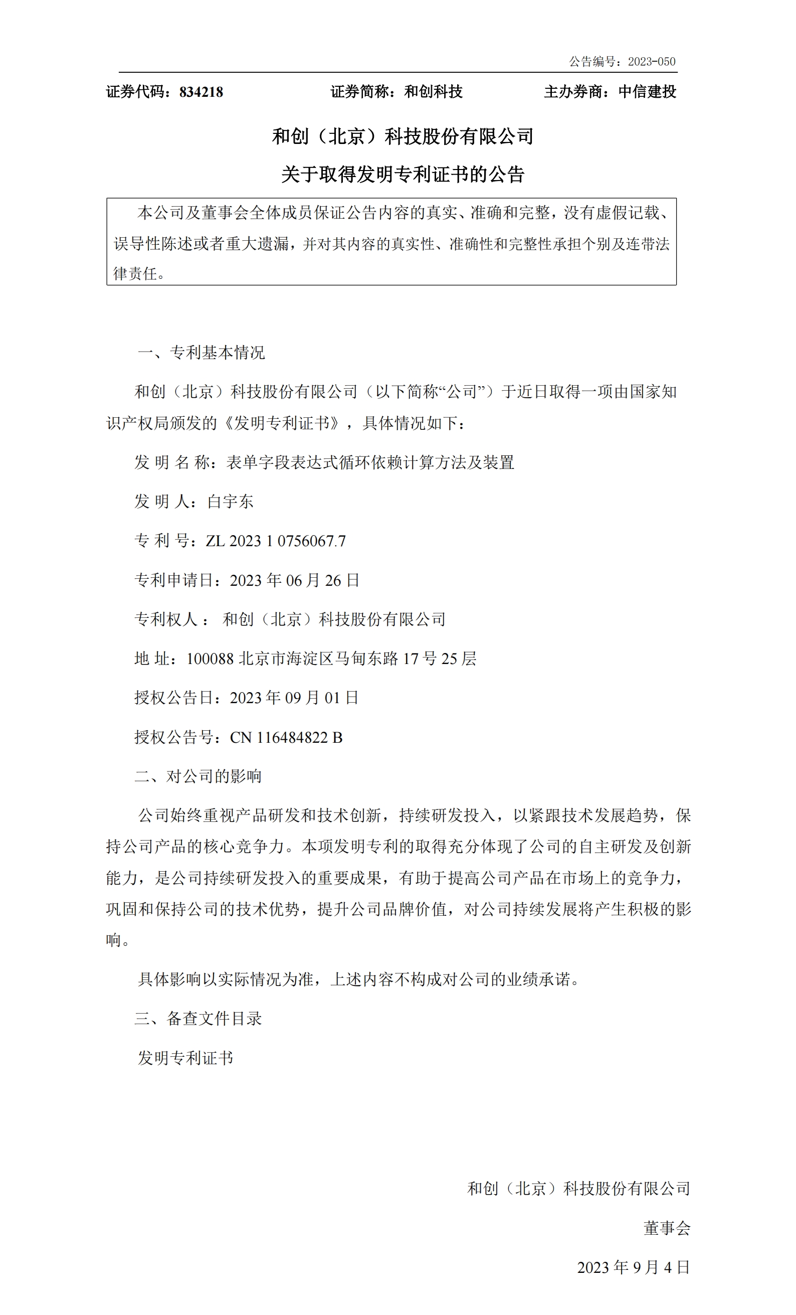 公司始終重視產品研發和技術創新,持續研發投入,以緊跟技術發展趨勢,保持公司產品的核心競爭力。這兩項發明專利的取得充分體現了公司的自主研發及創新能力,是公司持續研發投入的重要成果,有助于提高公司產品在市場上的競爭力,鞏固和保持公司的技術優勢,提升公司品牌價值,對公司持續發展將產生積極的影響。