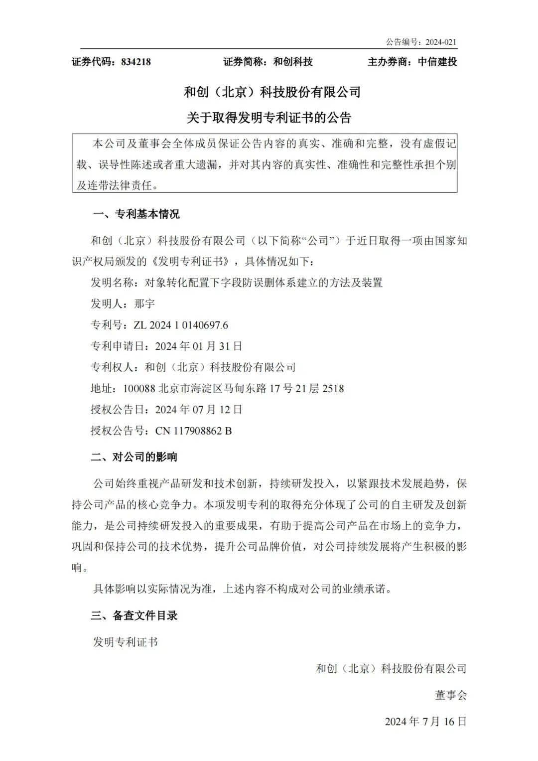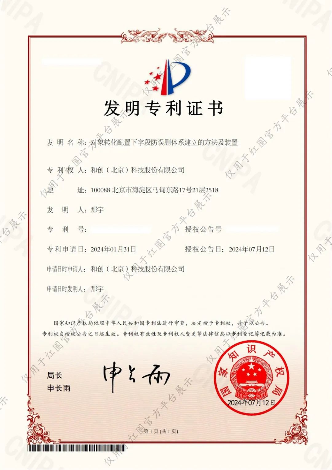 在科技發(fā)展日新月異的今天,每一項新的專利都代表著一次技術(shù)的革新與突破。近日,和創(chuàng)科技再迎一項技術(shù)創(chuàng)新,榮獲最新專利——“對象轉(zhuǎn)化配置下字段防誤刪體系建立的方法及裝置”。