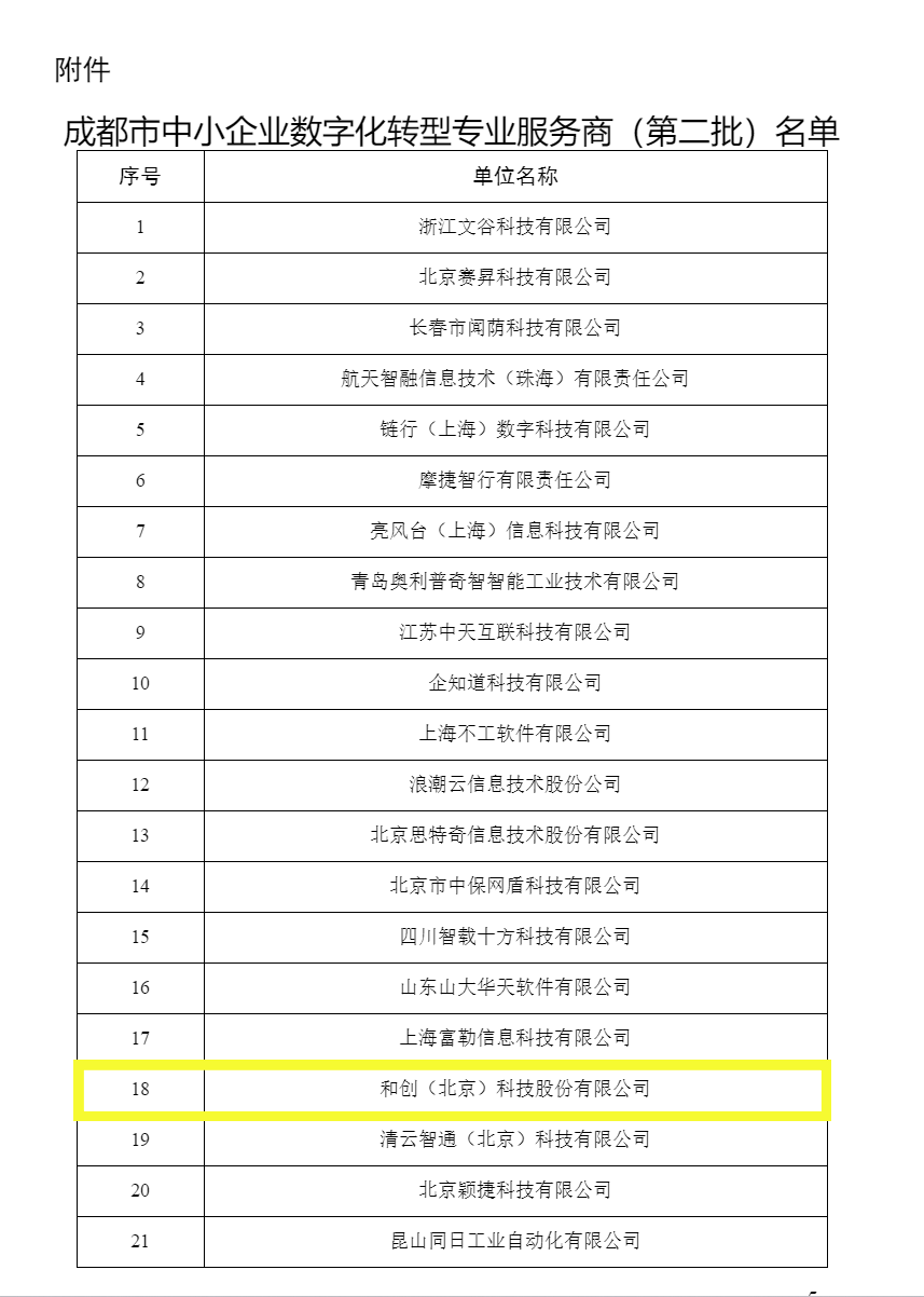紅圈新聞?|?再入選成都!和創(chuàng)科技入選成都市第二批中小企業(yè)數(shù)字化轉(zhuǎn)型服務(wù)商