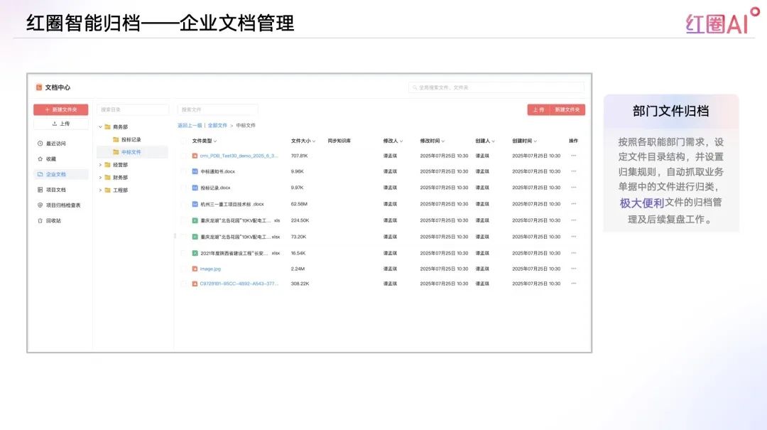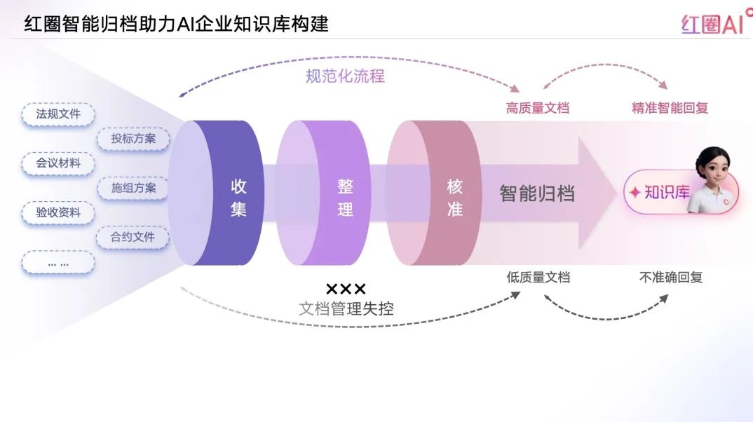 紅圈AI,以大模型+智能檢索技術為引擎,構建企業知識資產體系,實現“經驗即問即答”,推動企業從“人找知識”走向“知識找人”。