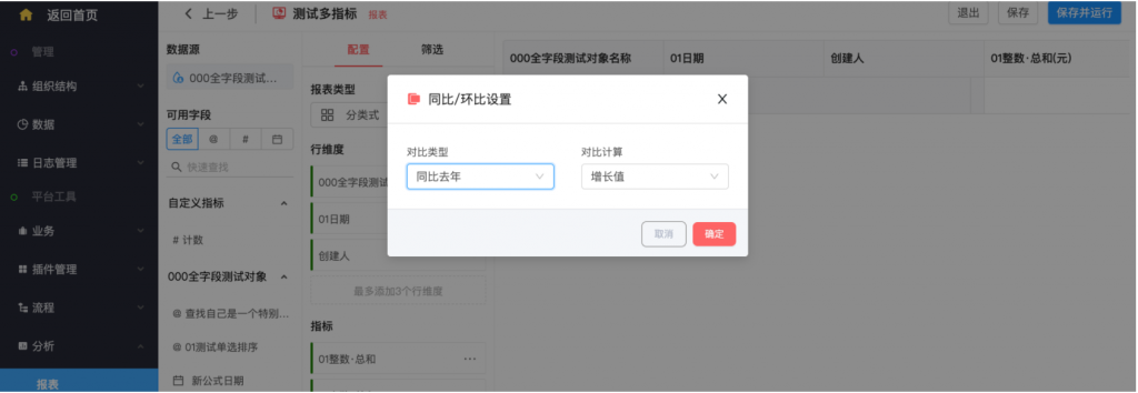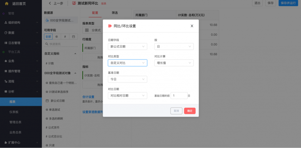 - 無時間維度的同環比設置,增加了自定義對比計算(相對日期和固定日期)