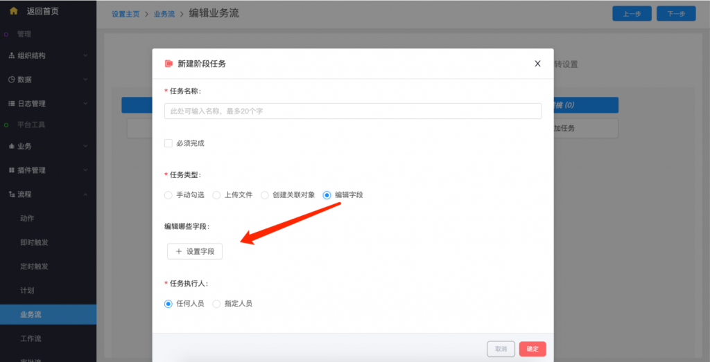 - 業務流添加階段任務,新增“編輯字段”類型任務,所有設置的字段均為必填