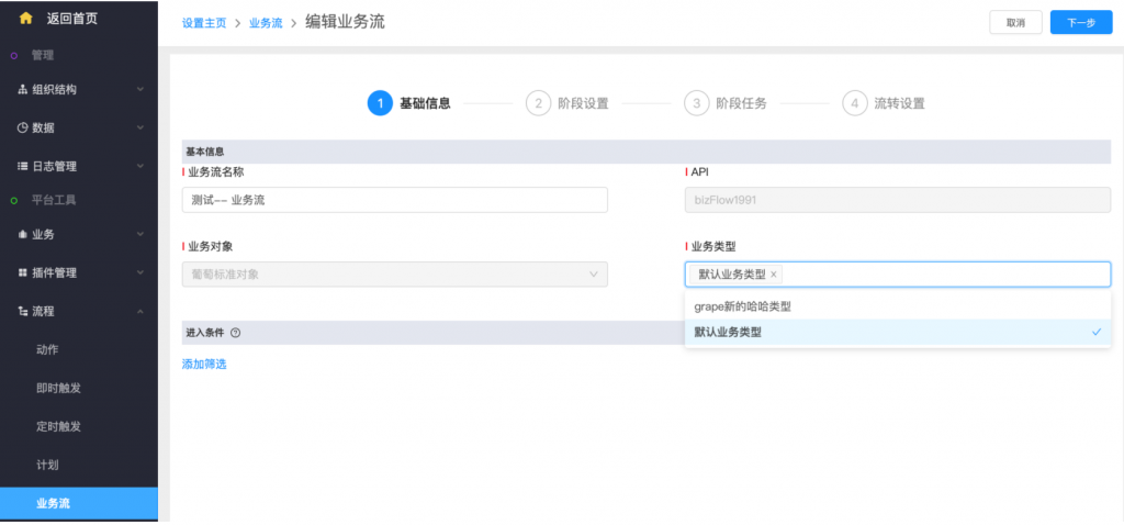 - 后臺編輯業務流配置時,支持編輯業務類型;