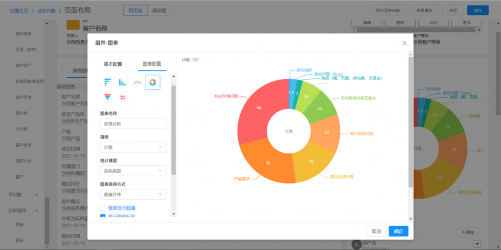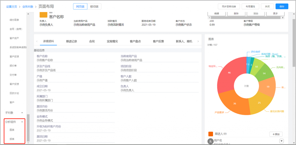 在數(shù)據(jù)資料的詳情頁面上,可以查看相關(guān)對象的報表。實現(xiàn)以當前數(shù)據(jù)為中心,360度視圖輕松查看分析全貌