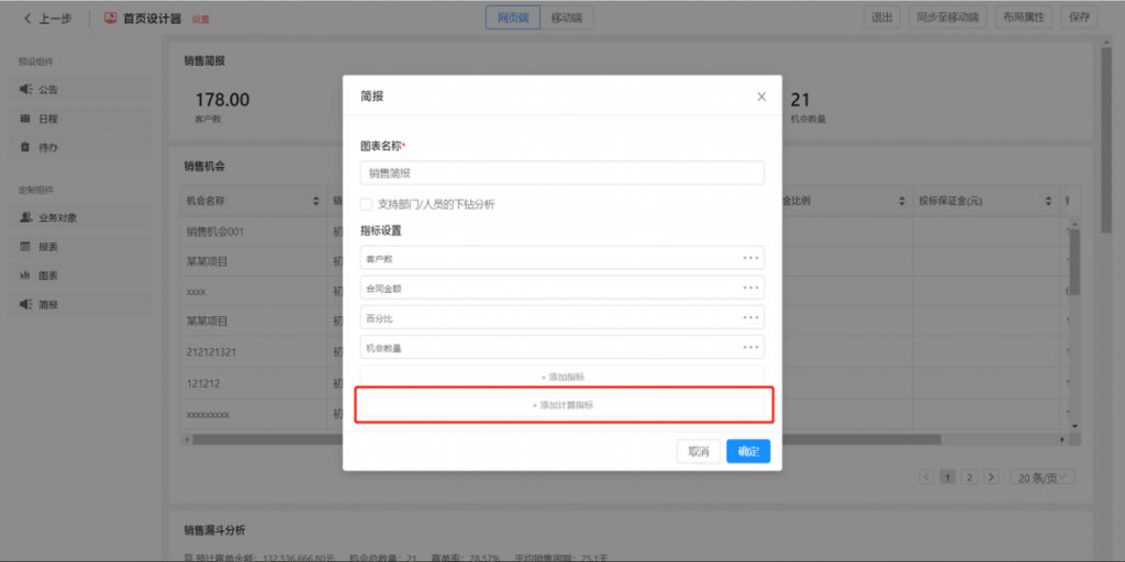 計(jì)算指標(biāo):首頁(yè)簡(jiǎn)報(bào)組件,可支持指標(biāo)間進(jìn)行基礎(chǔ)四則運(yùn)算,生成計(jì)算指標(biāo)