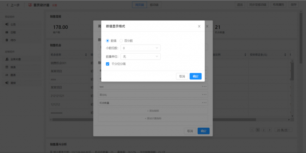 數(shù)值顯示格式:指標(biāo)都支持?jǐn)?shù)值顯示格式的設(shè)置,可設(shè)置單位、小數(shù)位數(shù)、百分比等