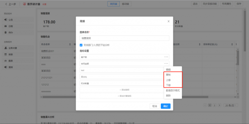 指標(biāo)排序、復(fù)制:組件內(nèi)指標(biāo)支持排序和復(fù)制