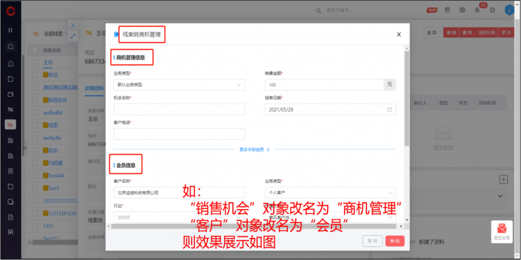 線索轉(zhuǎn)化頁(yè)面對(duì)象名稱變化