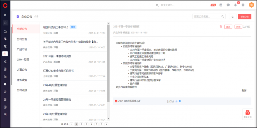 - 紅圈?CRM:以PaaS平臺(tái)為支撐,項(xiàng)目管理和銷售管理并舉