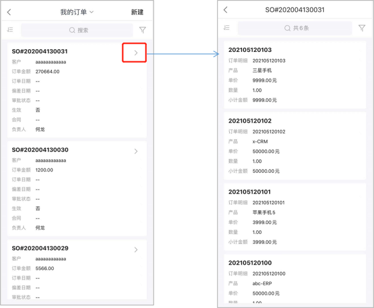 App端子對(duì)象列表顯示雙列:子對(duì)象組件中的字段會(huì)以兩列的方式進(jìn)行展示,方便快速查看明細(xì)