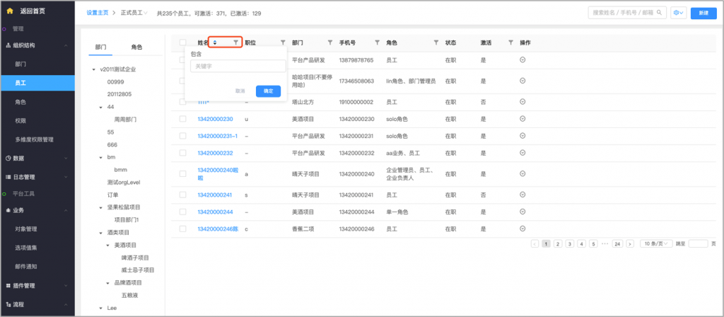 后臺(tái)員工列表支持篩選排序:后臺(tái)員工列表支持篩選及排序