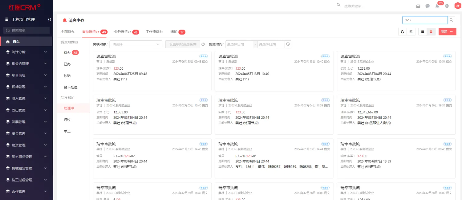 處理中、通過、中止分類卡片列表輸入關鍵詞可以對條目進行檢索,命中的關鍵詞