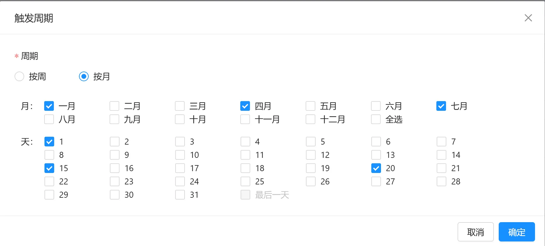 計劃增加自定義觸發周期,可按周或按月日設置觸發頻率,提升計劃任務的靈活性