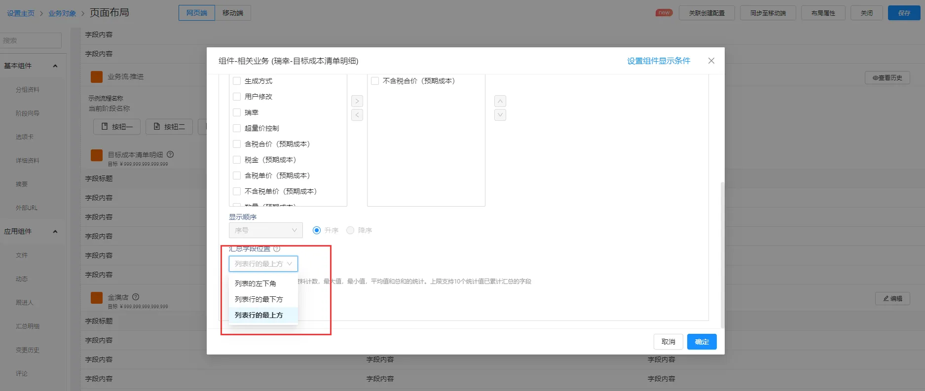詳情頁樹形子對象的匯總字段可以選擇放在列表行的最上方或最下方