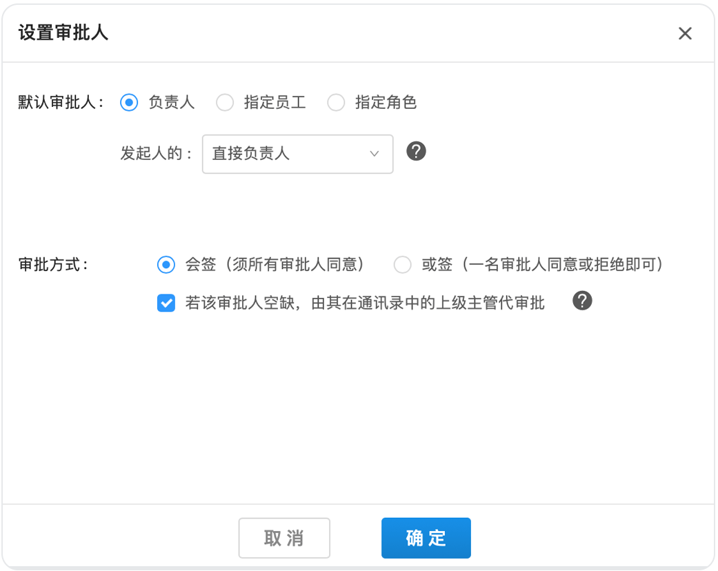 如果小王的公司對報銷把控比較嚴格,要求兩個財務審核同事全部同意后流程才能通過,那么可以在后臺將他們設置成“多人會簽”。