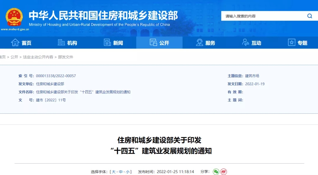 近日,住建部發(fā)布《住房和城鄉(xiāng)建設部關于印發(fā)“十四五”建筑業(yè)發(fā)展規(guī)劃的通知》。其中主要任務之一就是要加快智能建造與新型建筑工業(yè)化協(xié)同發(fā)展。