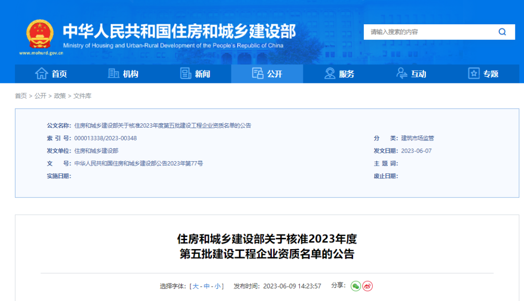 行業熱點?|?13家建企“升特”!住建部發布2023年度第五批建設工程企業資質名單!
