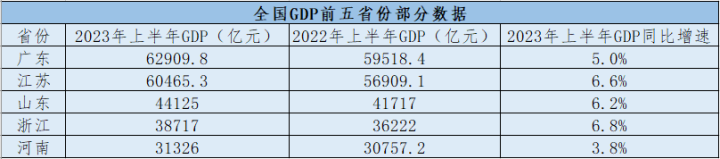 據(jù)統(tǒng)計(jì),今年上半年,廣東、江蘇、山東、浙江、河南、四川、湖北、福建、湖南、安徽、河北等11省及上海、北京兩市GDP均超2萬億元。