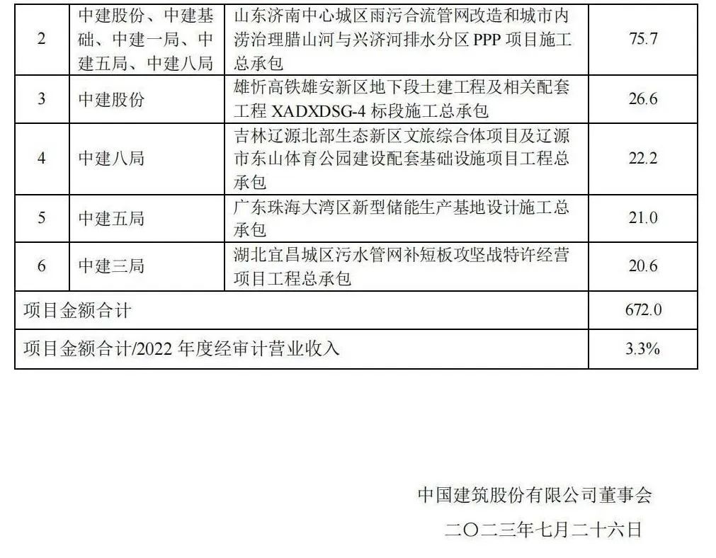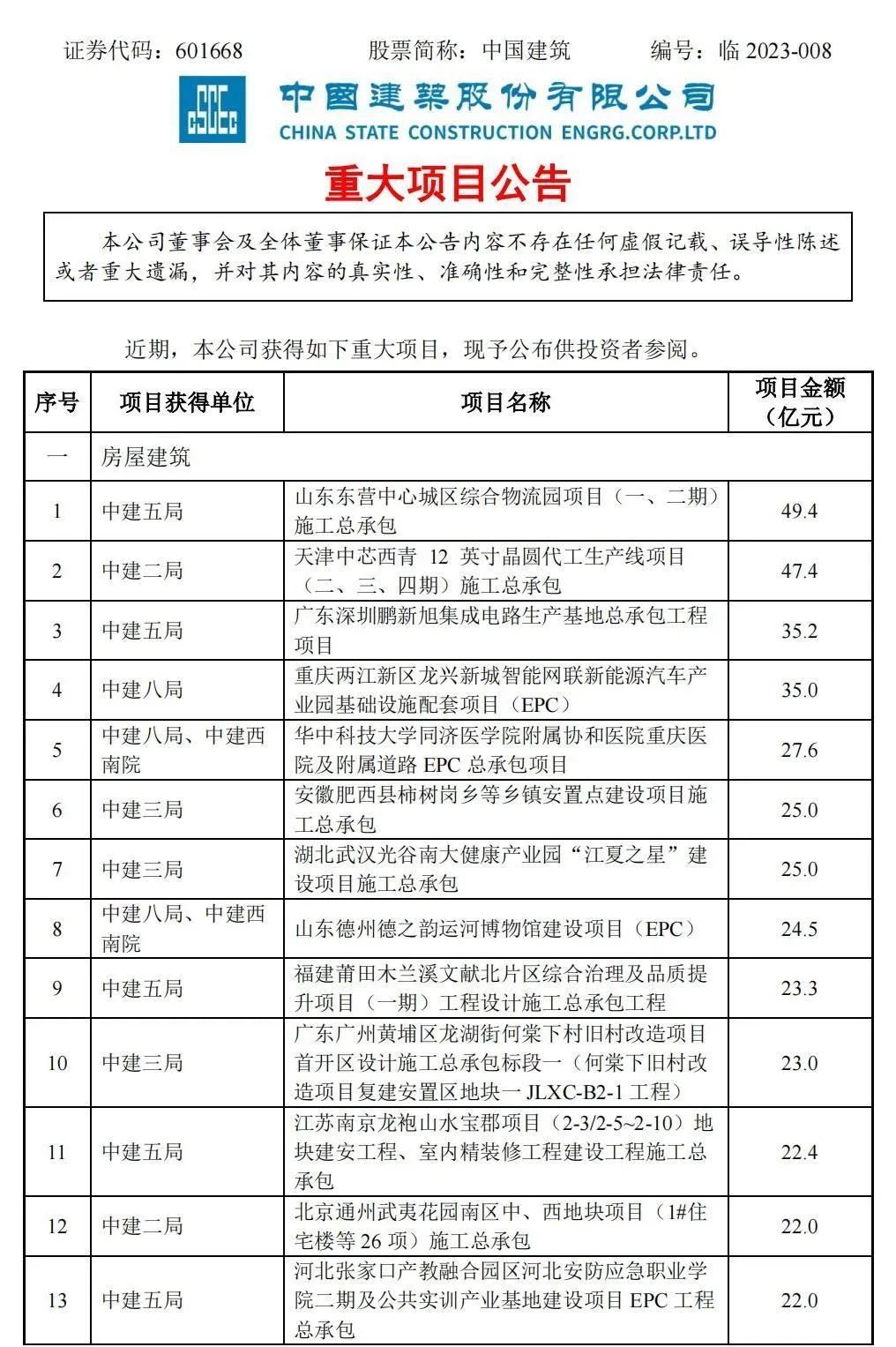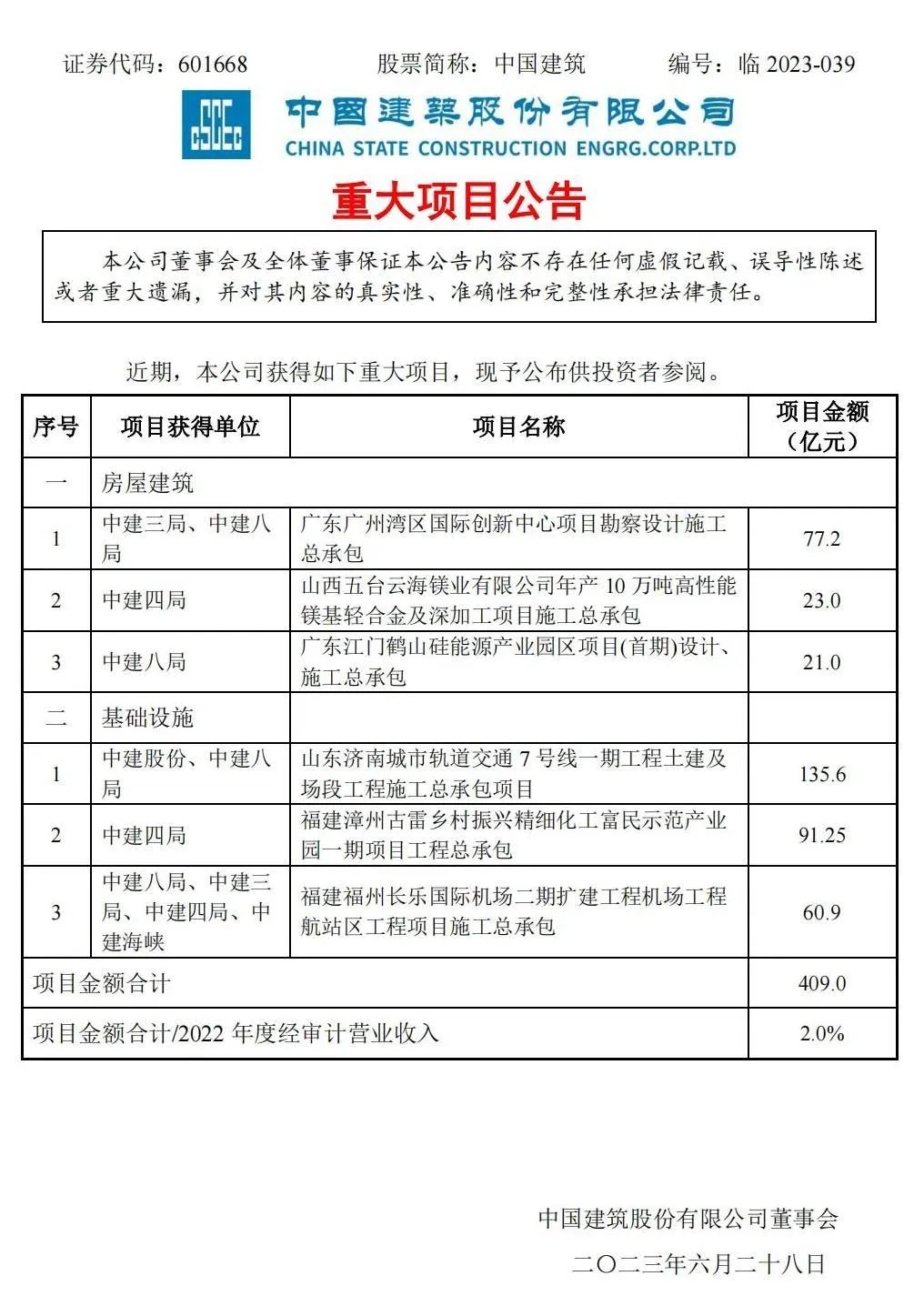 附中國建筑重大項(xiàng)目公告: