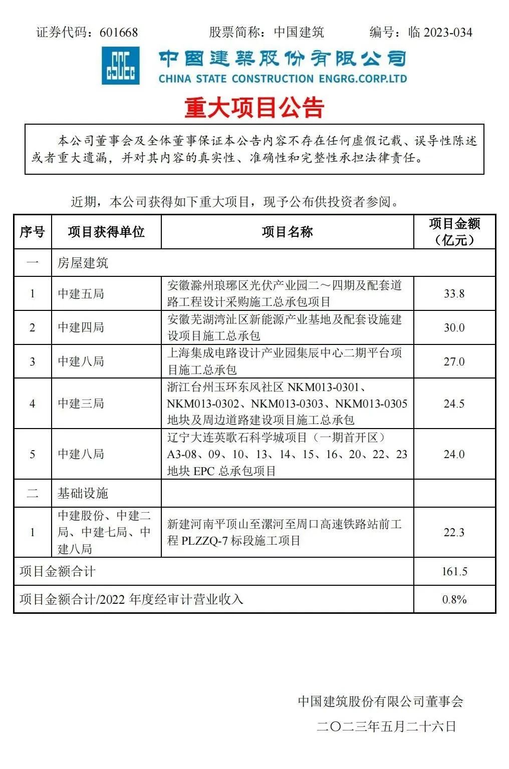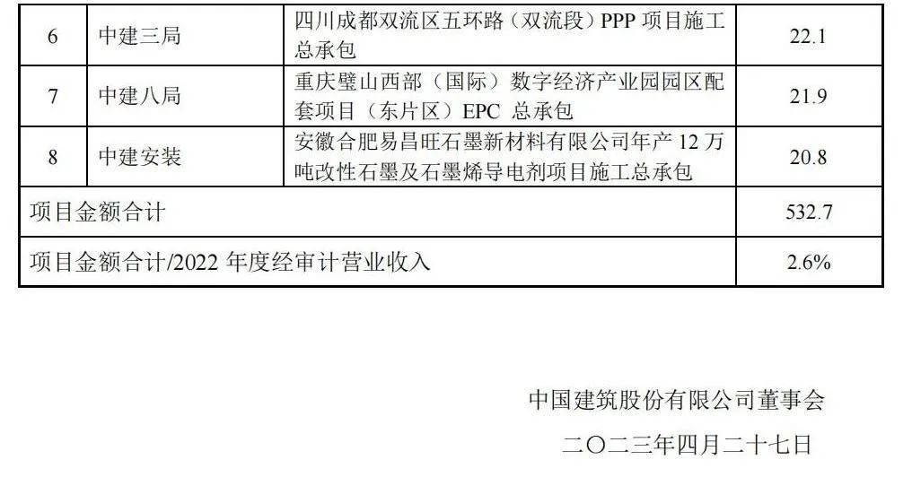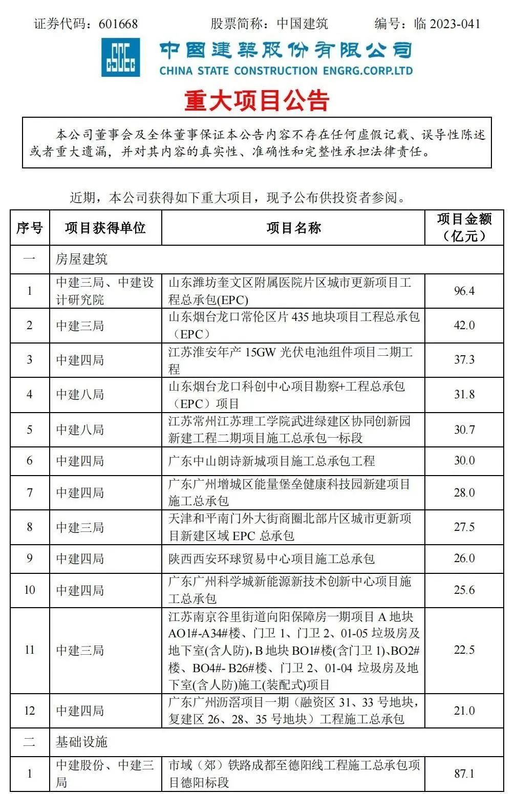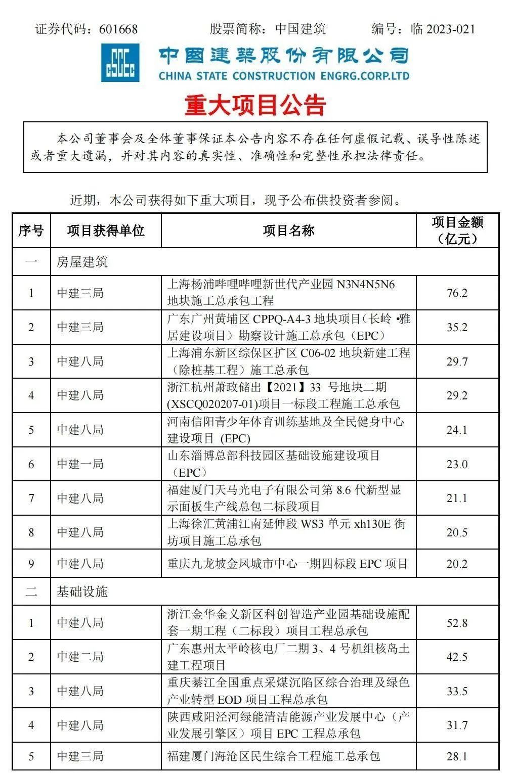 附中國建筑重大項(xiàng)目公告:
