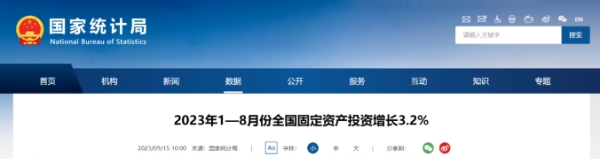 行業(yè)熱點?|?國家統(tǒng)計局:1-8月全國固定資產(chǎn)投資327042億元!