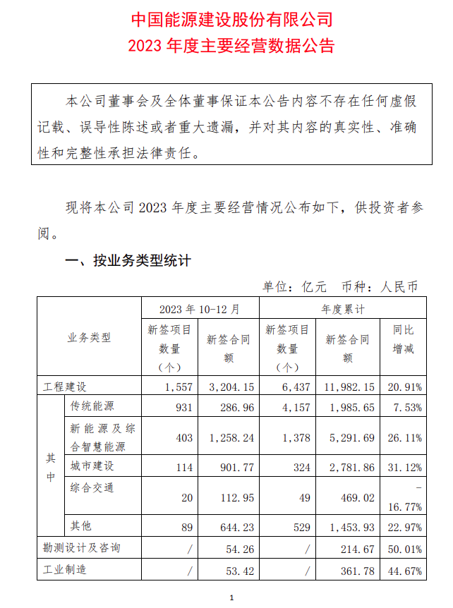 新簽合同額12837.31億!中國能建發布2023年度主要經營數據情況