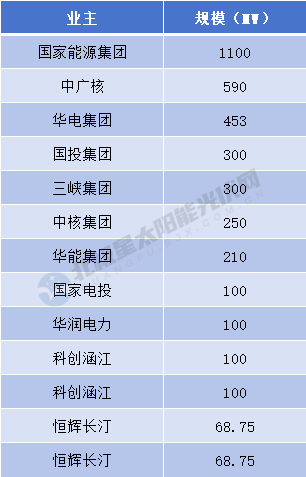 從業(yè)主來(lái)看,目前可查詢(xún)到業(yè)主的項(xiàng)目規(guī)模來(lái)看,國(guó)家能源集團(tuán)所獲項(xiàng)目規(guī)模最大,達(dá)到1100MW;中廣核、華電集團(tuán)緊隨其后,所獲規(guī)模分別為590MW、453MW;此外,國(guó)投集團(tuán)、三峽集團(tuán)、中核集團(tuán)等7家企業(yè)均有所獲。