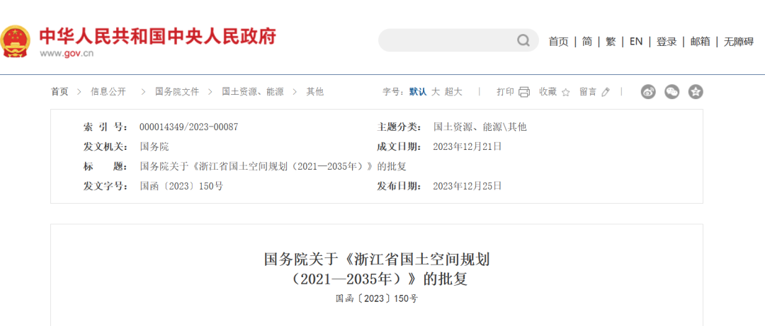 國(guó)務(wù)院關(guān)于《浙江省國(guó)土空間規(guī)劃