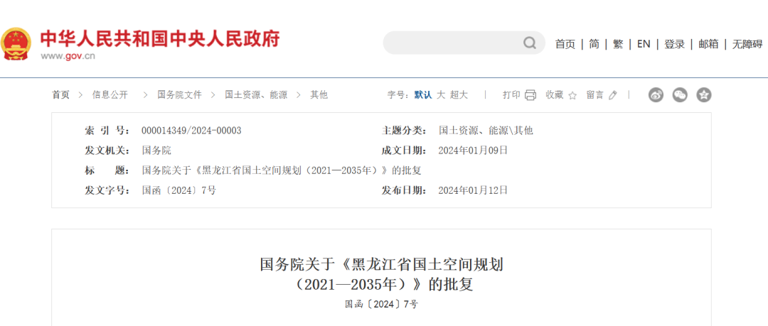 國(guó)務(wù)院關(guān)于《黑龍江省國(guó)土空間規(guī)劃