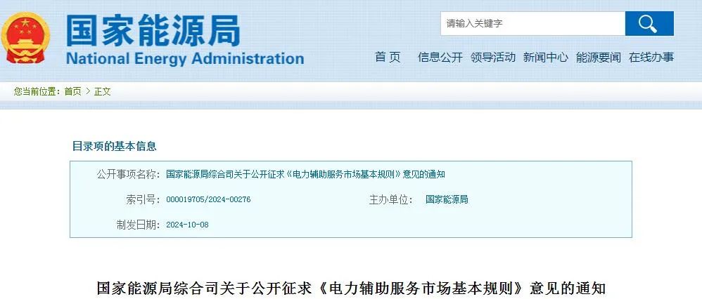 10月10日,國家能源局發(fā)布通知,就《電力輔助服務市場基本規(guī)則(征求意見稿)》向社會公開征求意見。