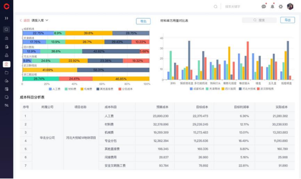 跨項目成本分析:通過統一數據口徑,橫向對比不同項目的同一成本科目(如混凝土用量),快速發現異常波動,擠壓“成本水分”。