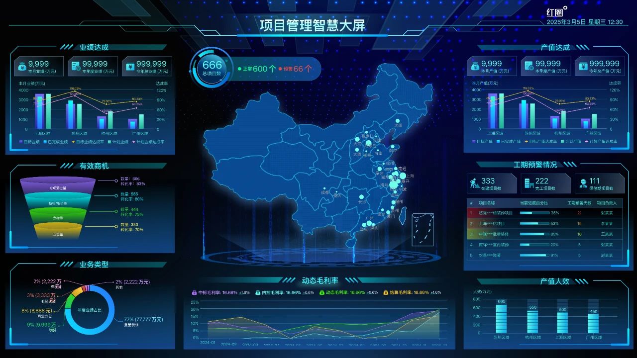 紅圈AI的項目360°解讀功能撕開了這層迷霧。系統自動整合合同全生命周期數據、物資結算流水、資金收支動態,一鍵生成“項目全景作戰圖”,3分鐘輸出傳統團隊3天的分析量。系統自動穿透數據表象,預判如“供應商欠款826萬僅付8.42%,斷供風險極高”的潛在危機,并基于行業經驗庫生成可落地的糾偏方案。從此,管理者告別盲簽決策,10倍提升經營會議效率,讓每一次會議聚焦行動而非爭論。管理者真正實現“一圖掌控千軍萬馬”。
