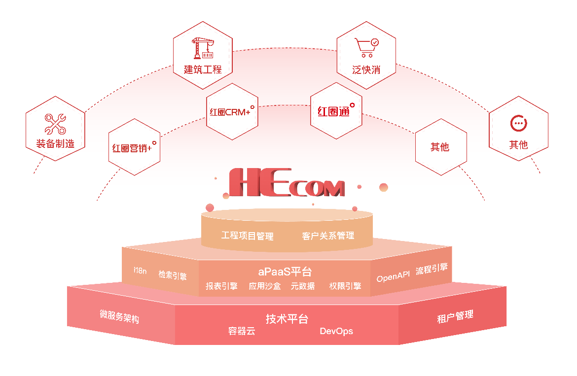 公司自主研發(fā)了“紅圈”系列 SaaS產(chǎn)品,主要包括紅圈 CRM+、紅圈營銷+、紅圈通等,覆蓋工程項目管理和客戶關系管理領域